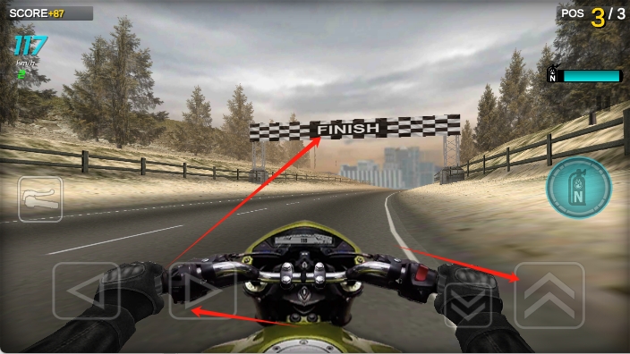 1、驾驶基础摩托车在简单赛道熟悉操作,尝试超越少数对手,感受竞速快感。
