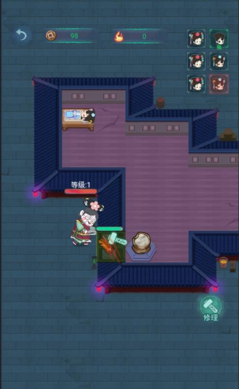 1、启动游戏,将扮演小主或格格,在寝宫中构建防御系统,抵御化身容嬷嬷的猛鬼攻击。
