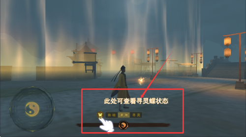 2、点击灵蝶启动寻灵功能,灵蝶会自动跟随并在换房时搜索孤魂,帮助玩家高效完成驱鬼任务。