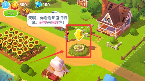 1、进入游戏后,我们需要先维修好喷泉,轻按来修理他。