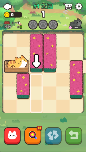 1、玩家需要通过滑动方块来创造通路,帮助被困的猫咪到达出口,完成关卡挑战获取金币奖励。