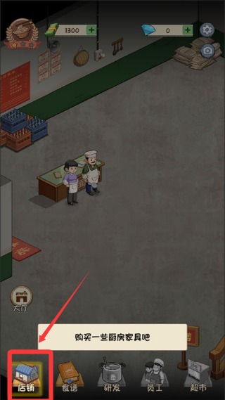 2、接着我们需要购买一些厨房家具,点击左下角店铺购买。