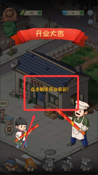 3、摆放好厨房家具后即可开业了,点击即可开业剪彩。