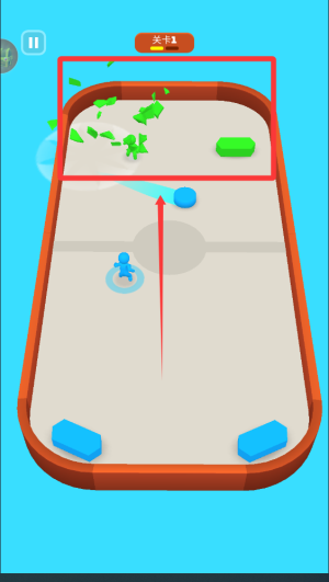 1、玩家需要通过滑动屏幕控制飞盘的投掷方向和力度,精准命中敌人的防御设施,考验玩家的精准度和操作技巧。