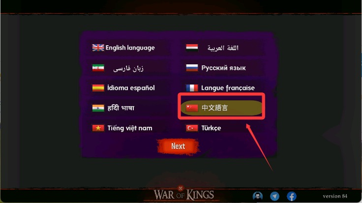 1、进入游戏后选择一个语言开始游戏,这里选择中文。
