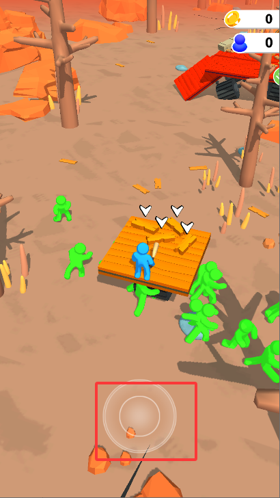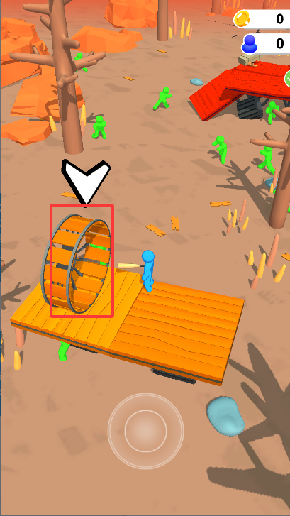 1、下载安装好游戏后打开,通过下方摇杆移动角色手机木板。