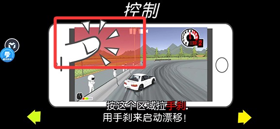 3、点击左侧下方可以刹车,点击左侧上方,可以进行手刹,一般手刹可以直接启动漂移。