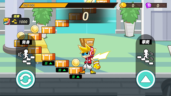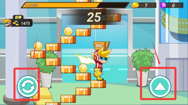 3、开始游戏后点击右下角按键即可爬楼,左侧是转身,掉下去了则游戏失败。