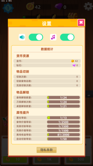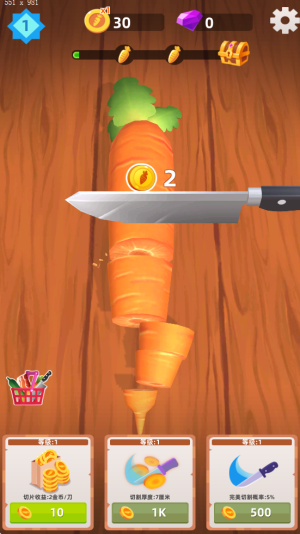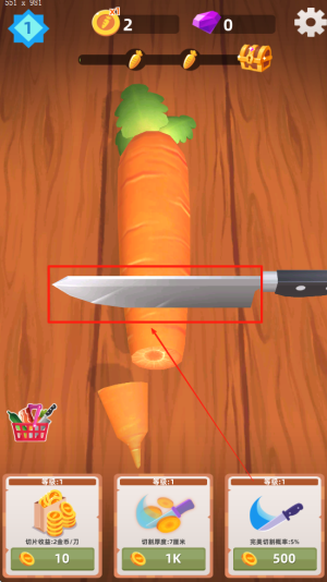 3、装备升级将显著提高你的切割技术,玩家可以体验到不同刀具的魅力,感受到切水果的成就感,从而增强游戏的趣味性。