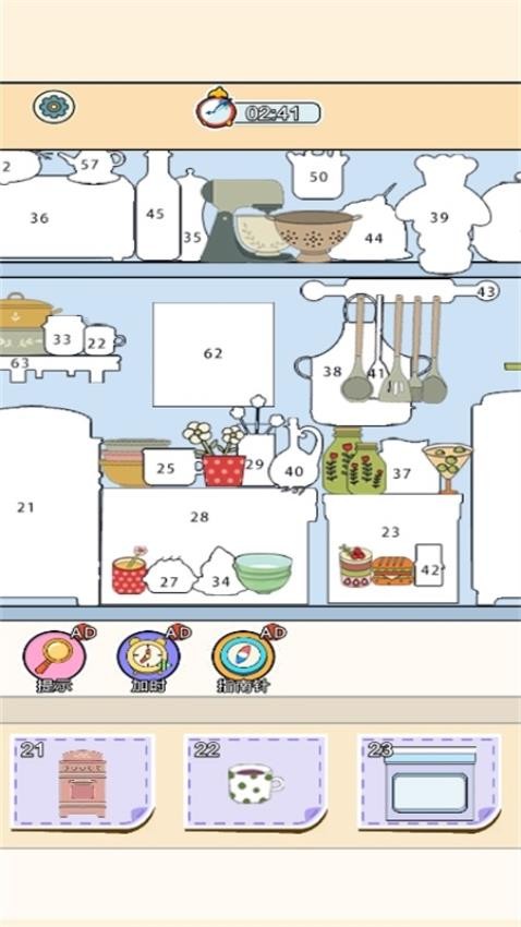 3、道具系统创新实用,提供10种功能各异的收纳工具,合理使用能提高整理效率,连续完美收纳会触发"整洁达人"状态。