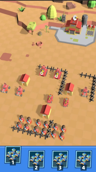陆军射击迷你战争是融合策略塔防与第一人称射击的军事题材手游,玩家将扮演精英指挥官,肩负守卫军事基地的重任,游戏采用3D低多边形美术风格,战场场景涵盖沙漠、雪原、丛林等多种地形,搭配真实的武器音效与爆炸特效,营造沉浸式战斗氛围。