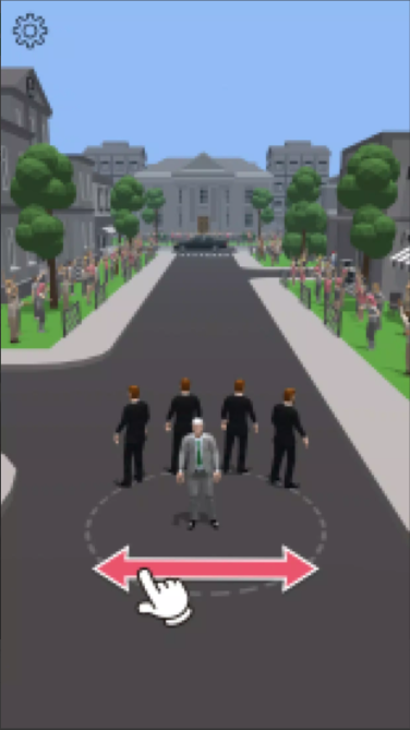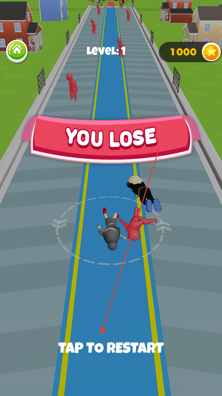 1、点击“TAPTOPLAY”开始Level1,操控角色在道路跑酷,利用保镖(黑衣、墨镜男)抵御红色敌人。