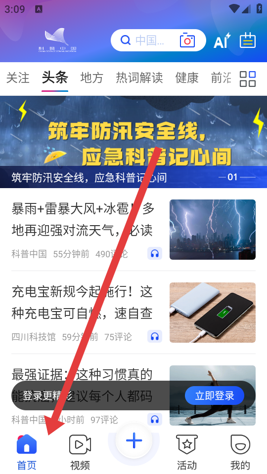 2、完成身份设置后,进入APP底部导航栏左侧的首页界面,以图文、视频形式呈现科学知识,下滑可以浏览最新科学动态,随时探索科学魅力。