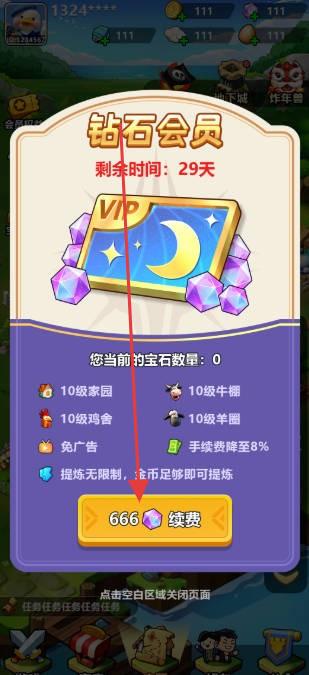 3、会员福利:关注钻石会员权益,按需续费,利用提炼无限制,加速资源转化,助力庄园发展。