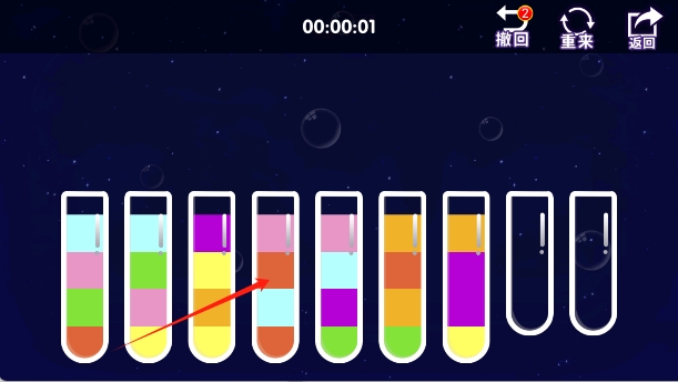 2、策略倒水规划:面对带滤网、多层障碍的关卡,提前预判水流路径,规划倒水力度与时机,如先小水量试探通道,再稳定注水完成目标。