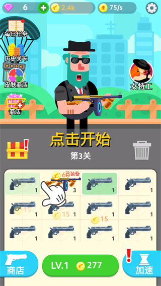 1、 精准狙击与战术移动:点击屏幕瞄准射击,滑动控制角色走位,合理利用掩体躲避敌方火力,爆头击杀可节省弹药并提升任务评分。