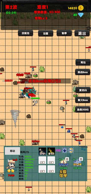 2、英雄自身可参与战斗,通过点击或滑动操控释放技能,对周边敌人造成范围伤害或控制效果;合理运用走位避开重攻击,增加存活率。