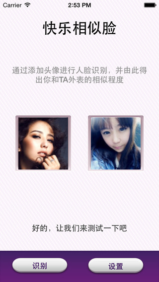 1.快乐相似脸可以根据你的头像知道你的性别,年龄和人种(黄种人、黑种人或白种人),更可以知道你们两个人是什么关系