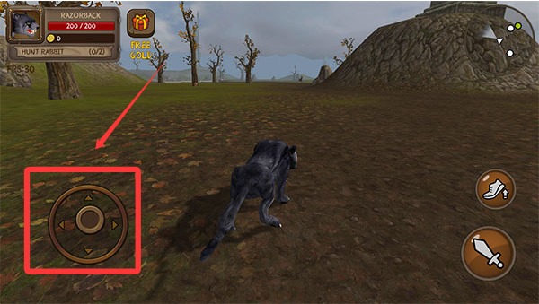 1、进入游戏后,通过滑动左侧的屏幕控制剑齿虎进行移动。