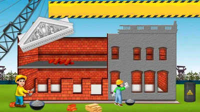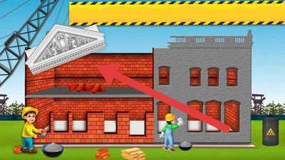 1、在建筑场景,按箭头指示,操控工人将建筑部件放置到对应位置,完成建筑搭建任务。