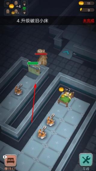 1、经济运营策略:开局优先将床铺升级至“每秒+32金币”档位,同步建造2台游戏机保障电力供应,维持金币与电力的动态平衡,避免资源浪费。