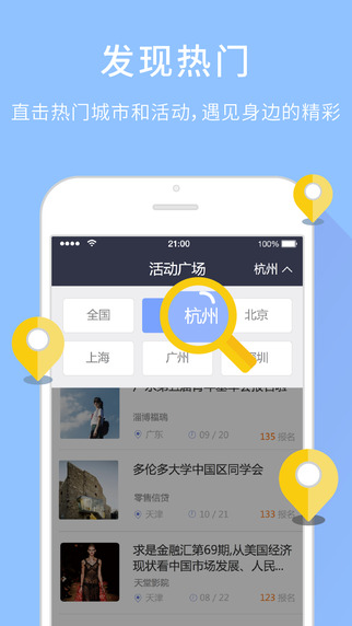 网罗全国海量活动,热门城市活动直通车,打通线上线下,惊喜就在身边。