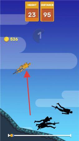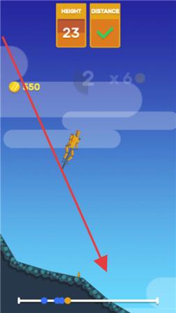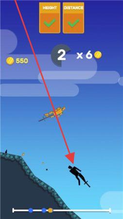 3、接近地面时,精准落在指定位置,撞击黑色剪影角色,完成关卡任务,获取金币奖励。