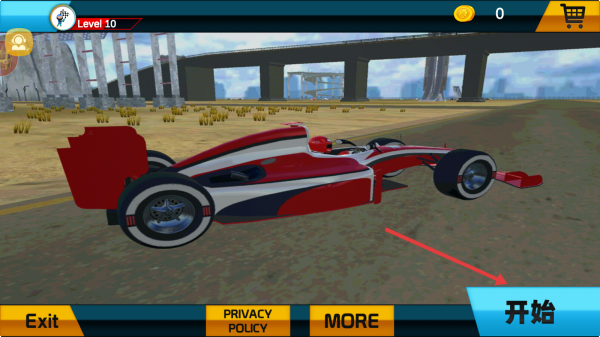 1、在Level10界面,点击【开始】,驾驶方程式赛车进入赛道。