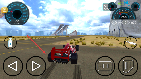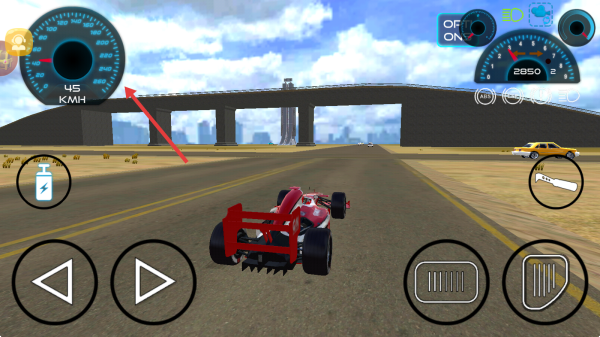 2、行驶中关注左侧速度表,用虚拟按键控制方向与加速,保持高速行驶。