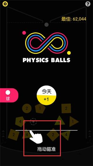 2、拖动屏幕调整弹球发射角度,松开手指发射弹球击打下方数字小球,击中次数达数字值时小球消除,注意小球会持续上升需及时击打。
