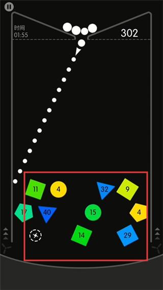 2、数字消除挑战机制:数字小球随时间递增高度,刻有数字5的小球需击打5次消除,数字越大难度越高,结合弹球数量增长机制,形成“弹射-消除-增球”的循环爽感。