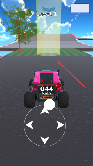2、Level1行驶中,加速冲向坡道,借黄色光柱区域提升速度,跃过斜坡。