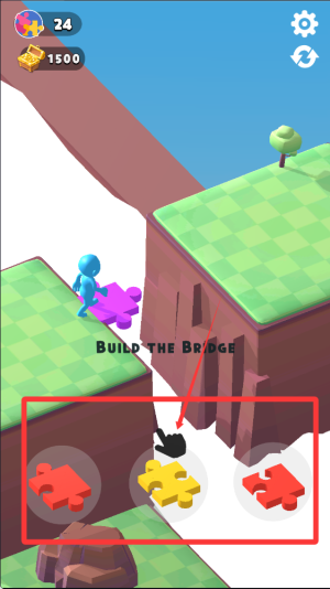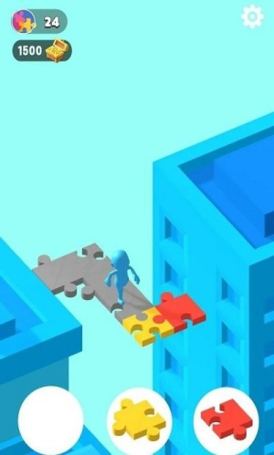 1、玩家需要根据关卡提供的拼图板块,通过点击选择合适的拼图并将其拖动到正确位置,搭建出完整的过河桥梁。