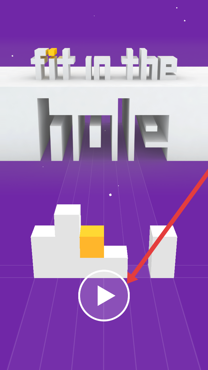 1、进入游戏主界面,点击底部紫色播放按钮,启动墙来了,尝试让下方方块契合上方孔洞。