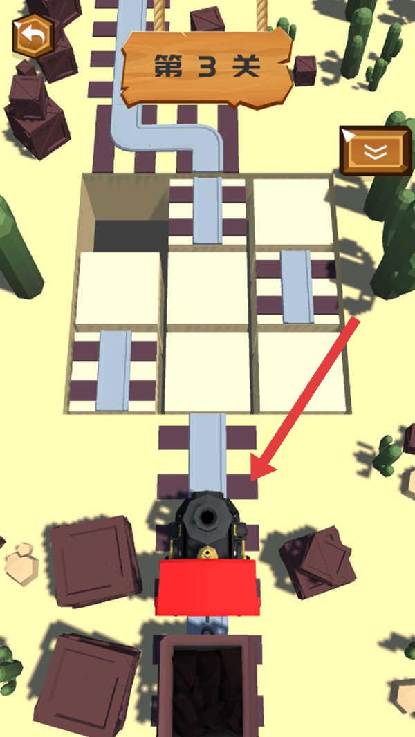 1、进入【火车大冒险】第3关,操控火车沿轨道向前行驶,避开周边障碍。