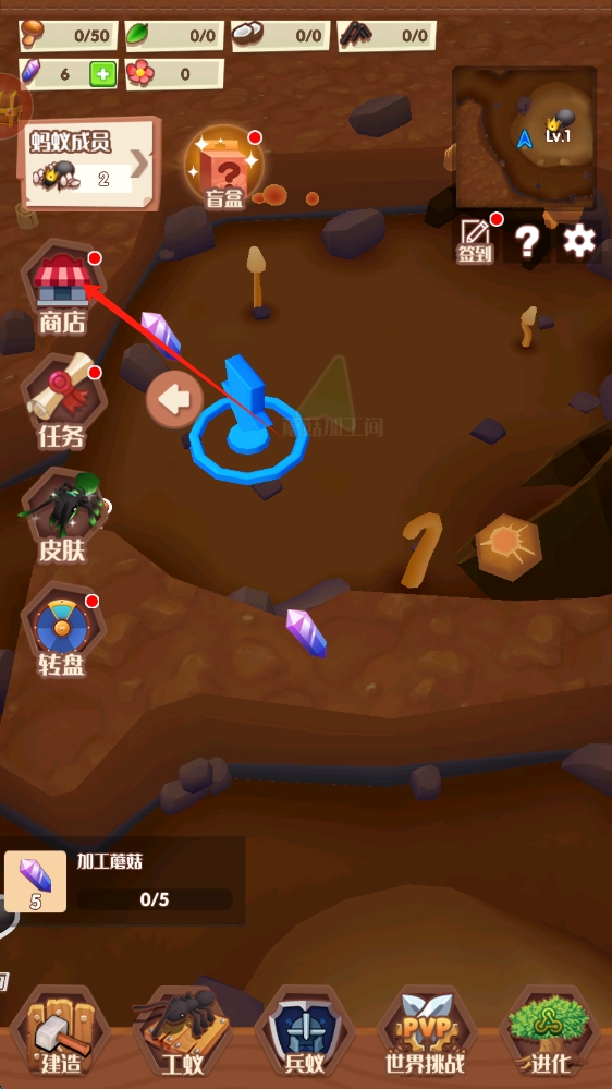 3、点击进入商店,收集特定组合的成就奖励解锁限定剧情,如"解锁所有基础建筑""累计孵化1000只工蚁"。