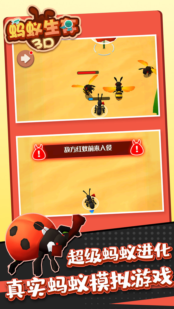 蚂蚁生存是一款融合策略模拟与生态冒险的休闲手游,玩家将化身蚁群领袖,在微观世界中带领族群探索、建设与战斗,通过资源管理、战术规划与种群发展,体验从弱小蚁穴到庞大帝国的成长历程游戏采用精致写实的美术风格与深度生态系统,结合渐进式难度与成就解锁,高度还原蚂蚁社会的复杂与奇妙。