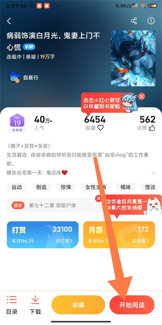 2、在作品详情界面,点击开始阅读按钮,进入小说阅读界面。