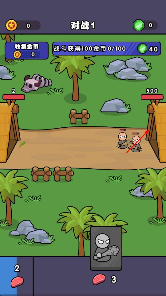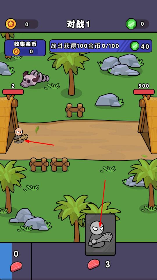 1、在“对战1”关卡,消耗食物召唤兵种,部署到路径,与敌方单位战斗,获取金币。