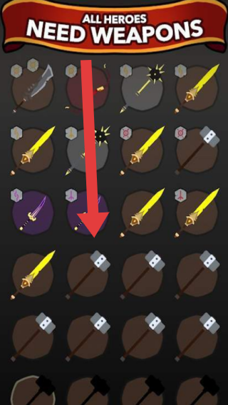1、在武器展示界面,浏览各类武器,按箭头方向滑动屏幕,查看更多武器,选择心仪武器。