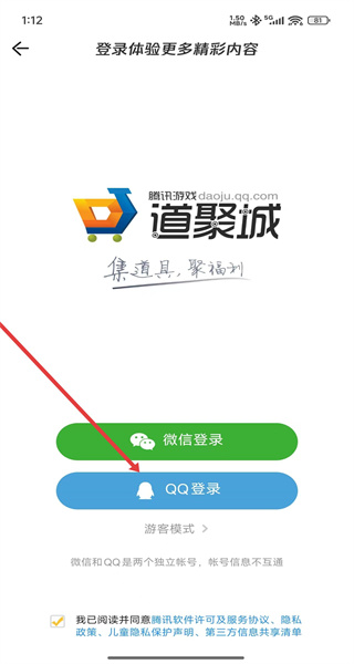 2、在进入到登录页面中,可以点击QQ登录按钮,使用QQ账号进行登录。