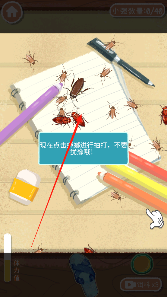 1、视觉萌趣战场:现代卡通风格的场景与可爱的小强形象,细腻的光影效果与夸张的打击特效,随战斗节奏变化的背景音乐,全方位打造极具视觉冲击力的灭虫世界。