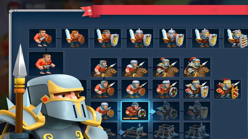 2、全维度军队养成系统:收录剑士、骑兵、投石车等8大兵种,每个兵种可升级3阶形态(如剑士→重剑士→圣殿骑士),解锁「盾墙防御」。