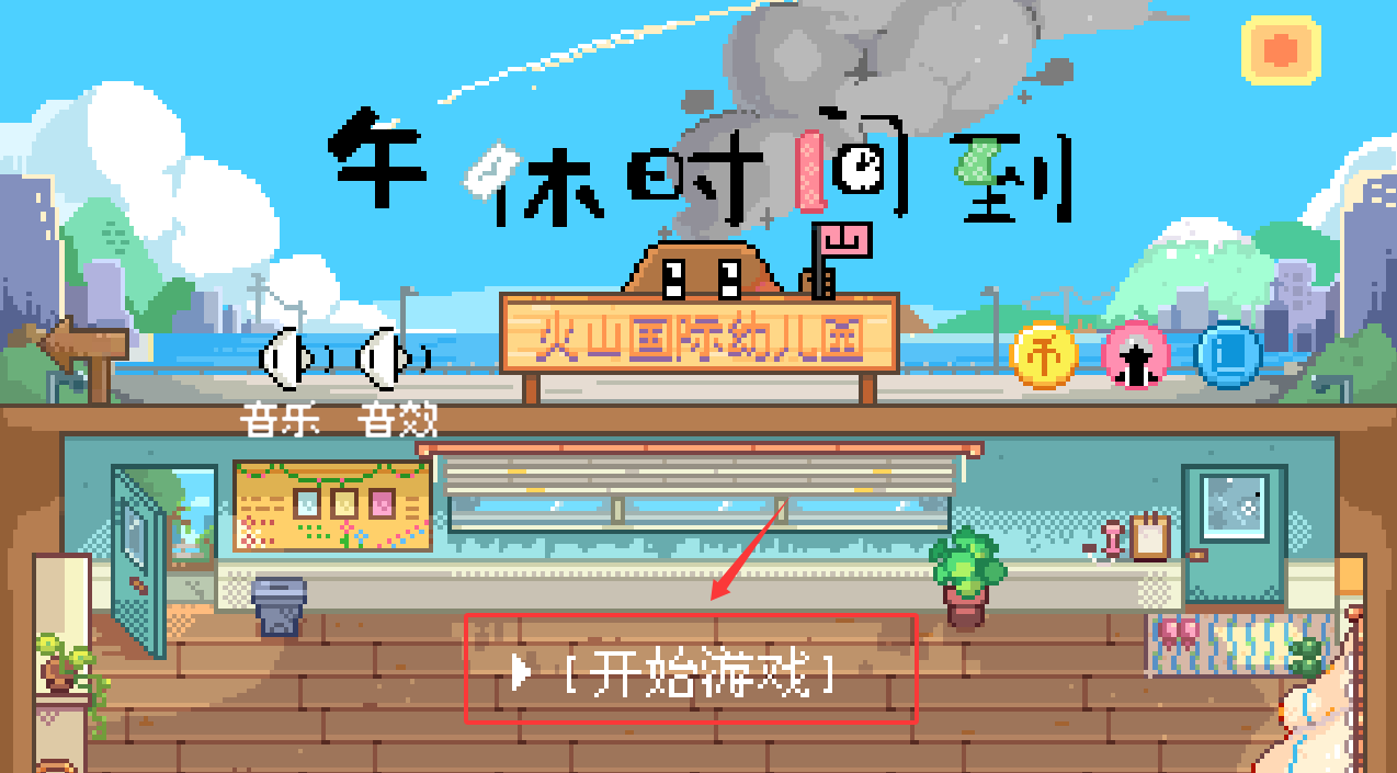 1、午休时间到火山哥哥自制游戏采用复古像素美术风格,精心打造充满童趣的幼儿园场景,细腻的像素细节与明快色彩相结合。