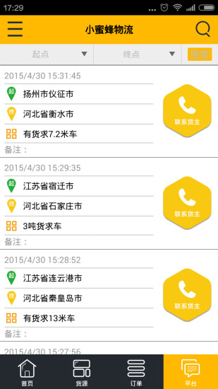 小蜜蜂物流司机端是给货车司机打造的app,哪里有货源?小蜜蜂物流告诉你,只需您下载小蜜蜂物流app就可以轻松的查找货源信息,可以联系货主,接受订单,管理订单,可以验证自己司机的身份,方便货主给自己推送货源。
