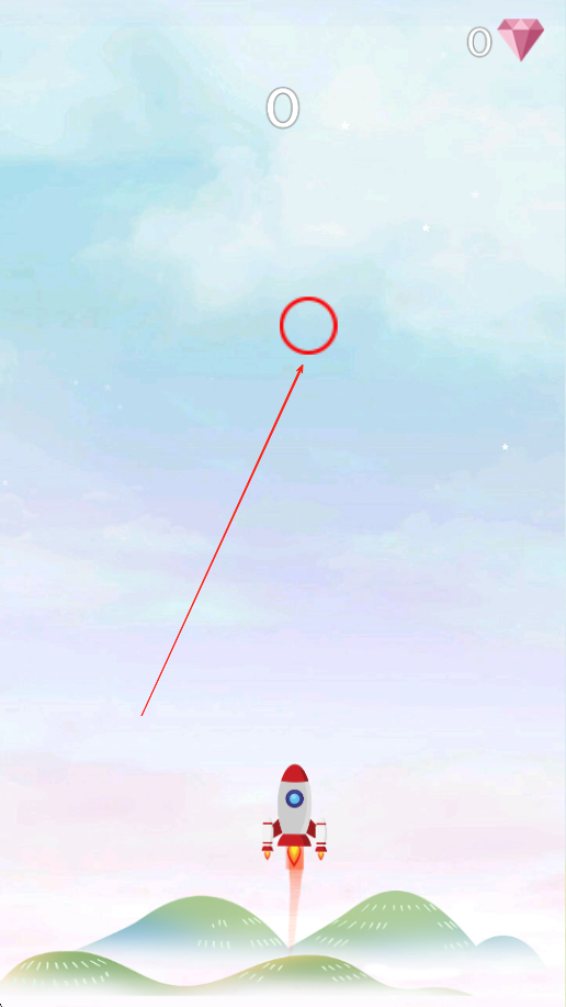 1、进入游戏后首先看到升空的火箭,通过滑动手指操控屏幕中的红圈小球,在火箭前方移动以清除首次出现的障碍物,熟悉基础操作流程。