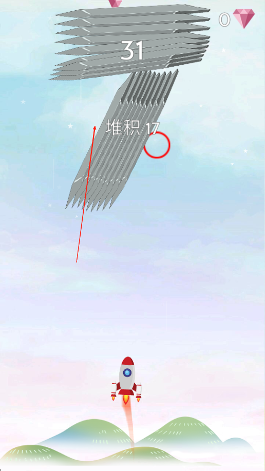 2、随着火箭不断上升,障碍物出现的频率和种类逐渐增多,需持续观察四周障碍动向,快速滑动手指调整红圈位置,确保及时扫清火箭飞行路径上的阻碍。