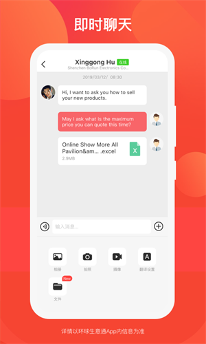 环球生意通最新版(改名GS生意通)是功能丰富的推广营销平台,汇聚多种协同办公功能,可便捷的管理商品,及时跟进各种销售信息,及时沟通交流,能够轻松的管理询盘,更高效的营销销售。