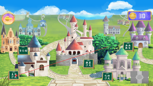 3、探索地图,点击“美甲沙龙”“换装沙龙”等建筑,进入对应场景,装扮公主形象。