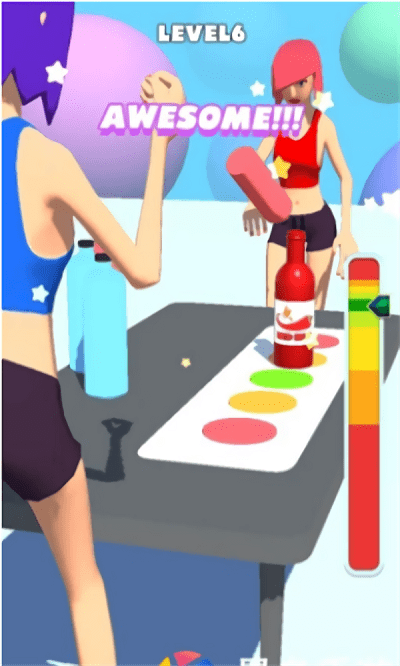 2、多样竞技场景:打造12种风格各异的比赛场地,如沙漠流沙赛道、冰雪滑行赛道,各场景地形影响瓶子运动轨迹。